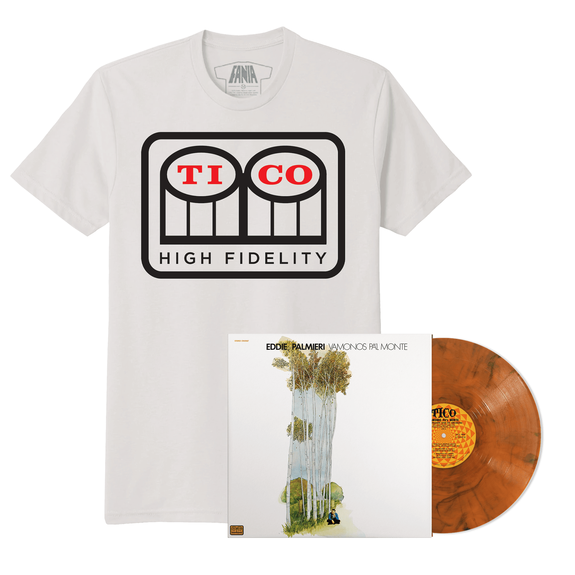 Long-out-of-print, Vámonos pa’l monte returns to its original format on March 20th, with pre-orders live today and featuring all-analog (AAA) mastering from the original tapes. The album is pressed on 180-gram vinyl and housed in a replica of its original Tico Records jacket. Palmieri fans can also find a limited-edition “Barro & Humo” (Clay & Smoke) color pressing (only 300 copies), as a stand-alone or bundled with a collectible Tico Records T-shirt, exclusively via Fania.com. Fans can also enjoy the remastered album in both standard and HD digital audio available now on digital music platforms.